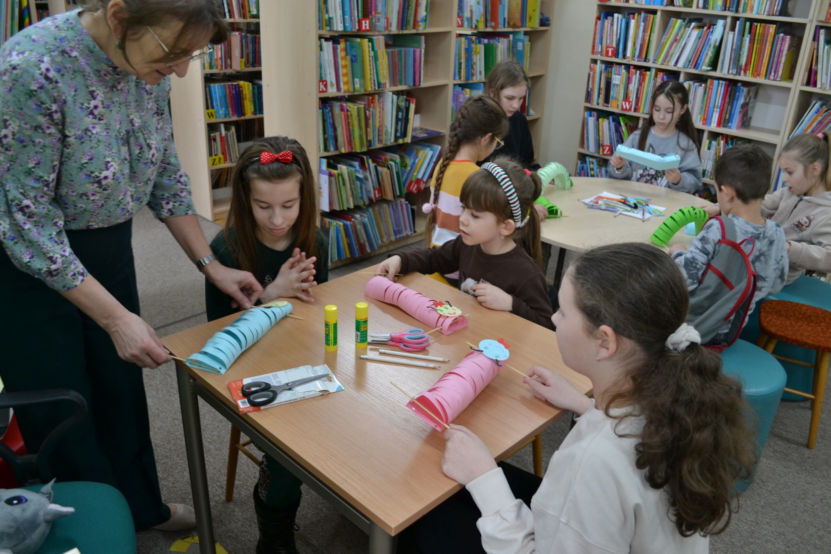 Podczas zajęć dzieci miały okazję wziąć udział w warsztatach plastycznych, zabawach oraz w innych aktywnościach, które rozwijały wyobraźnię i zachęcały do odkrywania świata książek.