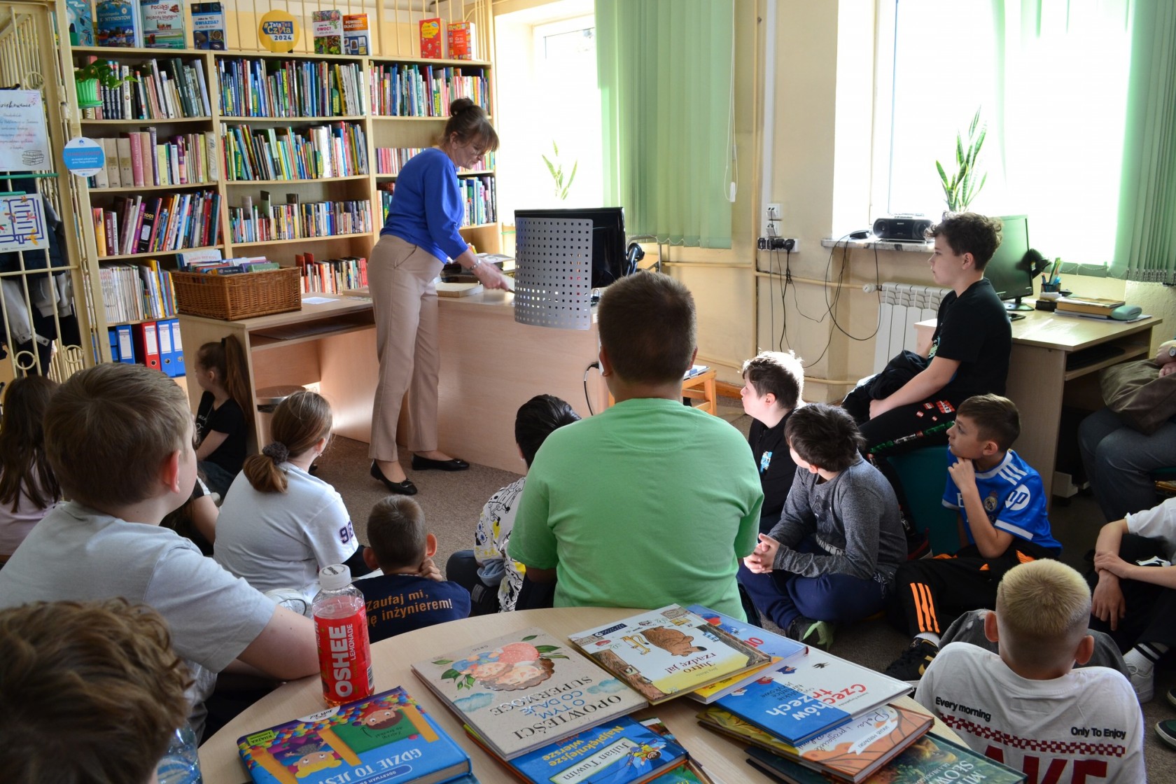 Z okazji światowego Dnia Książki i Praw Autorskich 21 i 23 kwietnia biblioteka zorganizowała edukacyjne zajęcia dla dzieci i młodzieży mająca na celu promocję czytelnictwa i książek. W ramach zajęć odbyły się lekcje biblioteczne o książkach prezentujące ciekawe, nietypowe książki dla dzieci, rozwijające wyobraźnie- które bawią i edukują- wyróżniające się nie tylko oryginalną grafiką i tematyką, a także innowacyjną formą wydania, angażujące czytelników w różne zabawy. ( np. książki przestrzenne, z obrazkami, w różnych formatach, książki zabawki).